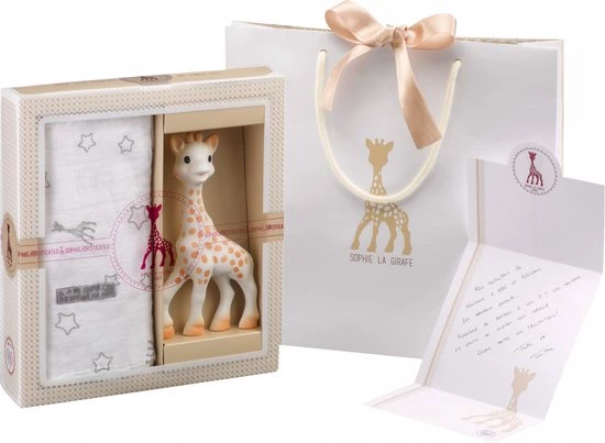 Deze cadeaus bieden essentiële producten in een mooie en verfijnde cadeaudoos. Ieder van deze cadeausets bevat ook een Sophie de giraf wenskaart en een cadeautasje met zijden linten, ideaal voor het aanbieden van het mooiste geschenk ter gelegenheid van een onvergetelijke gebeurtenis.