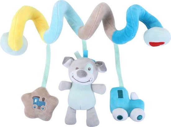 Tover een glimlach op het gezicht van je baby met deze leuke en vermakelijke boxspiraal. Er zijn 3 speeltjes aan de boxspiraal bevestigd met een rammeltje, knispertje en piepgeluidje.