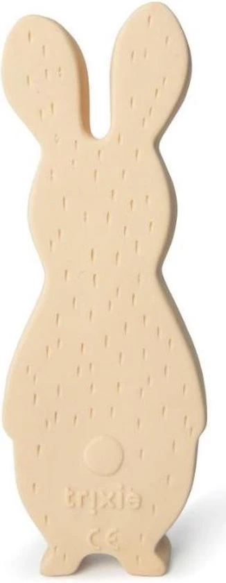 Deze leuke vriendjes zorgen voor uren vol speelpret voor de allerkleinsten! De leuke vorm, het zachte materiaal en de verschillende texturen van dit speeltje geven pasgeborenen en baby’s veel om te ontdekken en prikkelen al hun zintuigen. Dit speeltje is gemaakt van natuurlijk rubber. Dit materiaal is uiterst geschikt voor de allerkleinsten. Omdat het 100% puur en natuurlijk is, is het veilig voor kindjes vanaf 0 maanden oud. Het speelgoed is licht, zacht en werd doordacht ontworpen zodat baby’s ze gemakkelijk kunnen vastpakken. Baby’s vinden het heerlijk om deze speeltjes met zowel hun mond als handen te ontdekken. Ze zijn het perfecte kraamcadeau en allereerste speelgoedje voor pasgeborenen! Daarnaast heeft het speeltje een verzachtend effect op het tandvlees bij het doorkomen van de tandjes. Het kauwen op het zachte materiaal en de verschillende texturen leidt af en verlicht het pijnlijke tandvlees. Zo vermindert dit grijpspeeltje het ongemak tijdens de verschillende stadia van tandjes krijgen. Dit speelgoed is ook uiterst geschikt voor uren speelplezier in de badkamer! Doordat de producten geen openingen hebben, kan er ook geen schimmel binnenin het product groeien. Alle speeltje zijn met de hand beschilderd met verf op waterbasis die volkomen onschadelijk is voor baby’s. Dit ambachtelijke proces brengt kleine variaties in kleur en vorm met zich mee, wat elk speeltje en diertje uniek maakt. Als het om de verzorging gaat, veeg het oppervlak dan gewoon af met een sopje en een vochtige doek. Het is niet nodig om het grijpspeeltje te steriliseren, aangezien dit het natuurlijke materiaal zou beschadigen. Het spreekt voor zich dat het complete assortiment geen schadelijke stoffen bevat en voldoet aan de EN71 veiligheidsnormen. Alle producten zijn vrij van BPA, PVC, Ftalaten en Nitrosamine. Trixie Baby kleurt je wereld door met vrolijke en kleurrijke designs de leukste baby en kinderaccessoires te creëren. Trixie Baby is een Belgisch merk waarbij kwaliteit altijd centraal staat. Kenmerken Trixie Baby rubber speeltje Mrs. Rabbit: * Afmeting: 12 x 9 x 2 cm * Materiaal: 100% natuurlijk rubber * Voldoet aan EN71 * Vrij van BPA, PVC, Ftalaten en Nitrosamine Naast dit Trixie Baby rubber speeltje Mrs. Rabbit kun je bij ons terecht voor alle andere artikelen van Trixie Baby (). Over Trixie Baby: Trixie is een fris en jong merk voor de allerkleinsten tot de flinke kleuters en net iets ouder. Trixie heeft een breed assortiment aan textielproducten voor de bedtijd, badtijd en etenstijd van je baby. Zo vind je bij ons onder andere een leuk kinderdekbedovertrek, toffe baby badcape en hip verkleinkussen voor je Tripp Trapp eetstoel van je peuter. In het assortiment van Trixie vind je daarnaast ook originele kinderkamer decoratie, kinderpyjama’s en kleuterrugzakjes en kleuterboekentasjes.