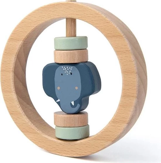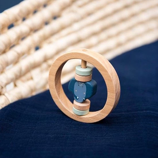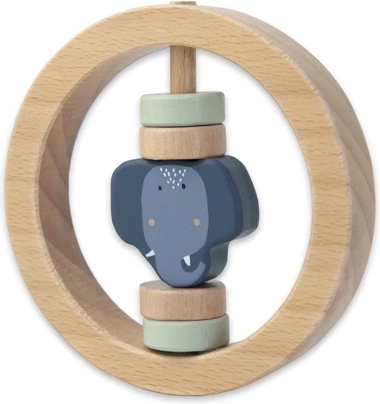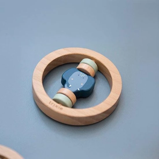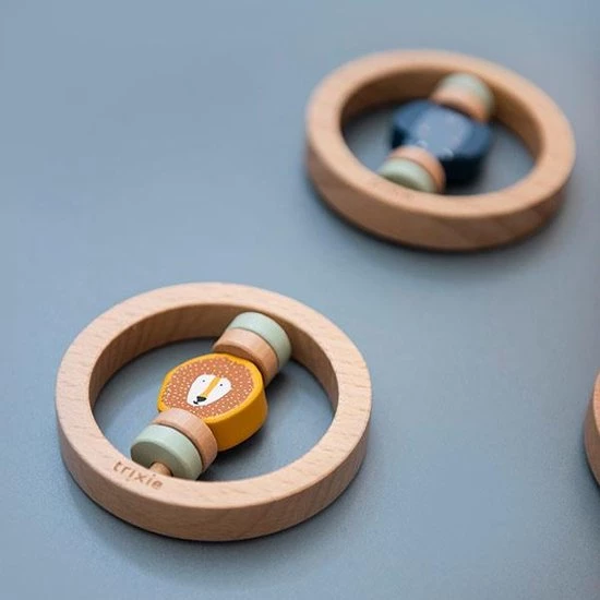 Deze ronde rammelaar is perfect voor kleine vingertjes! Ze kunnen voelen aan de verschillende elementen en het geheel maakt een leuk geluid als je ermee schudt. Deze rammelaar is gemaakt van hoogwaardig 100% FSC © gecertificeerd beukenhout. Alle verven zijn op waterbasis en veilig voor baby’s.