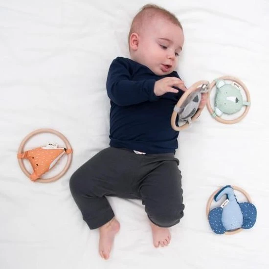 Rammelaar Mr. Raccoon van het Belgische merk Trixie. Zelfs de kleinste vingertjes kunnen deze schattige, kleine rammelaar vastpakken. Het rammelaartje en het knisperpapier zorgen voor uren entertainment voor elke baby!