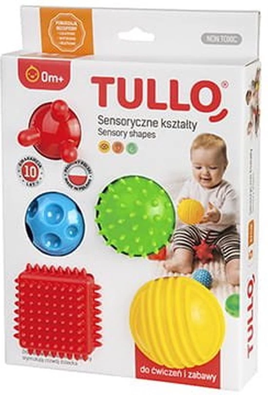 Een set van vijf zachte sensorische speeltjes ontworpen voor sensorische integratieoefeningen en plezier. Elk speeltje heeft een andere grootte en textuur, dus het geeft verschillende zintuiglijke indrukken.